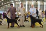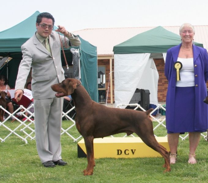 Keira and Meika were our teachers before we got serious. Thanks to many breed custodians who were encouraging and provided some advice and guidance, we learned to be competitive. This brought us to our 1st show Dobermann.